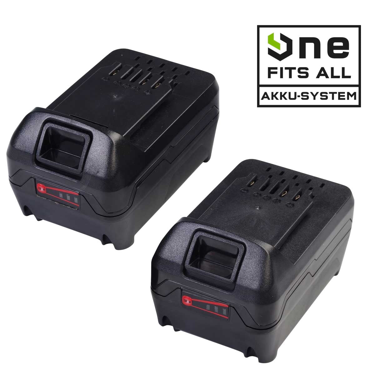 Die mitgelieferten 2x20V Li-Ion-Akkus mit viel 4,0Ah-Power und Akku-Ladestandsanzeige sowie 2 Speed-Ladegeräte passen auch auf alle anderen BRAST Akku-Gartengeräte aus der BRAST Akku-Serie 'One Fits All'