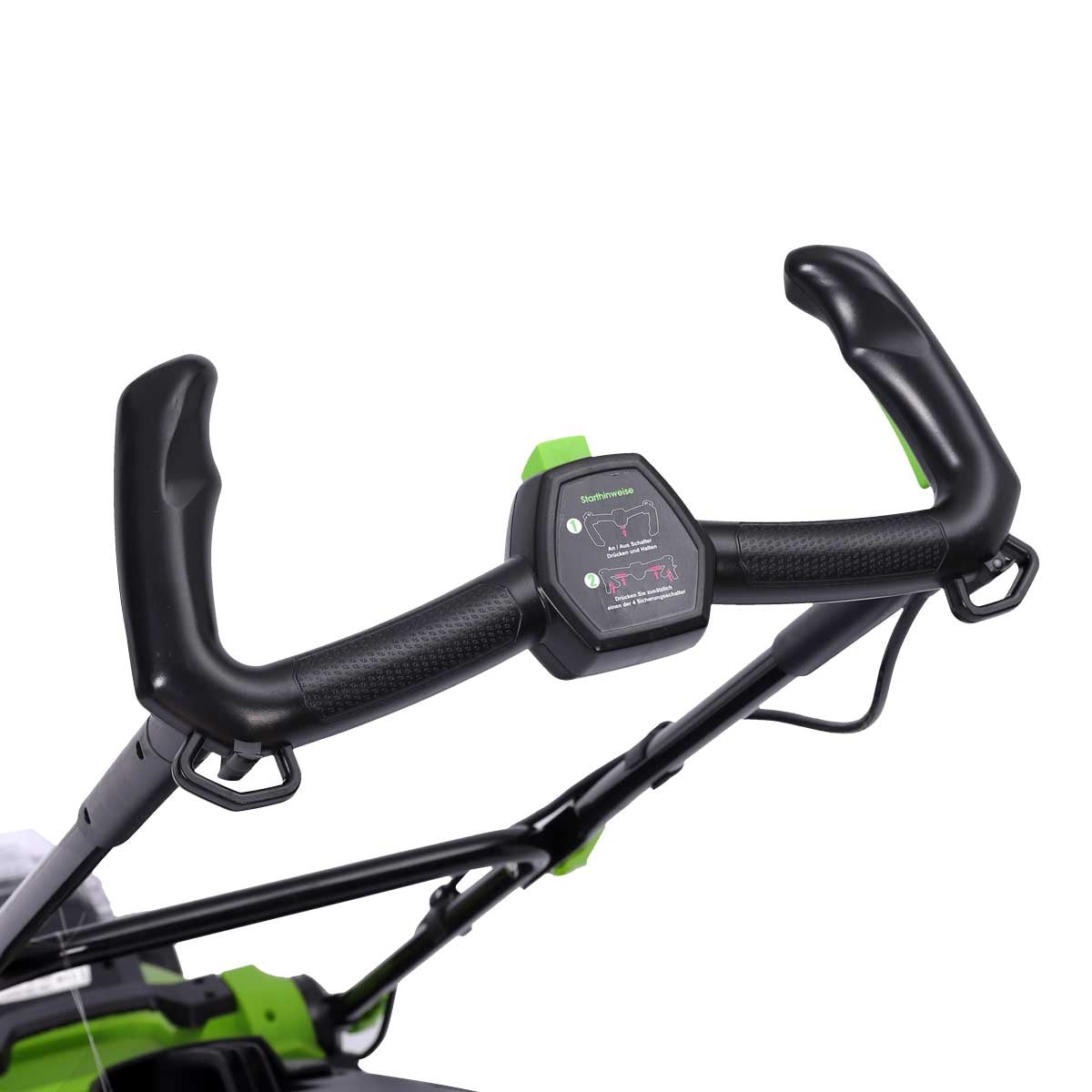 Der Komfortgriff wurde nach den neuesten ergonomischen Erkenntnissen entwickelt. Zudem können Sie den Führungsholm durch seine Höhenverstellung ganz auf Ihre körperlichen Anforderungen einstellen.